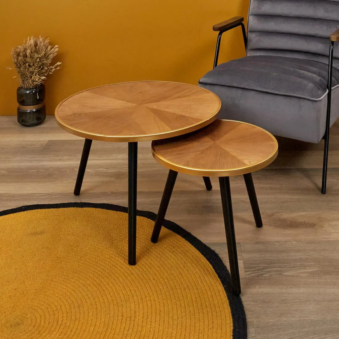 Décorez votre intérieur avec ce Lot de 2 Tables Gigogne Felix comprenant deux tables alliant chic et modernité. Leur plateau en bois de couleur naturelle est de forme ronde. Pour les porter, on retrouve un piètement noir.