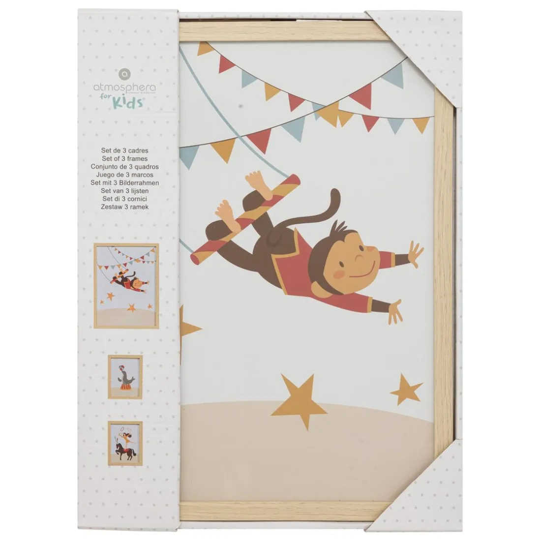 Cette décoration enfant de la marque 3S. x Home est un ensemble de trois cadres à thème de cirque. Les cadres, de hauteur 5, longueur 43 et largeur/profondeur 32, affichent de charmantes représentations d’animaux de cirque sur un fond doux et coloré. Le support est principalement en papier et bois. Les illustrations vives et amusantes aux tons de couleur multicolore font de cet ensemble un ajout attrayant à toute chambre d’enfant.