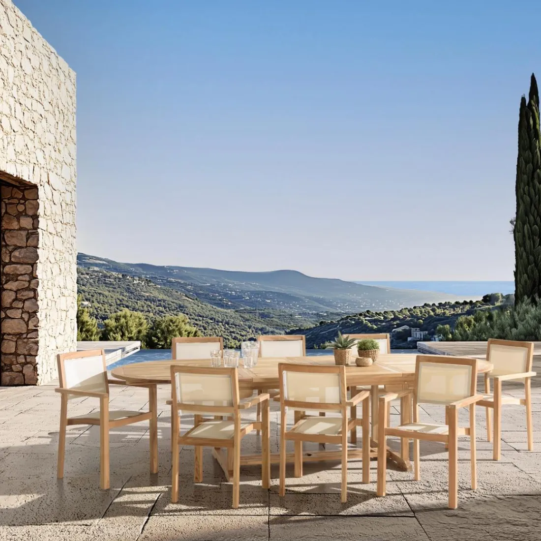 Caractéristiques Lot n°159 Salon de jardin en teck et textilène 10/12 personnes