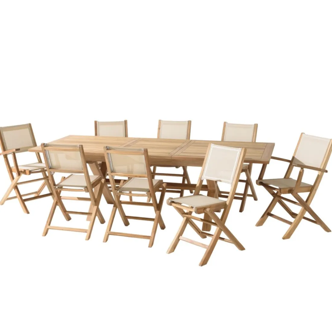 Caractéristiques Lot n°163 Salon de jardin en teck et textilène 10/12 personnes