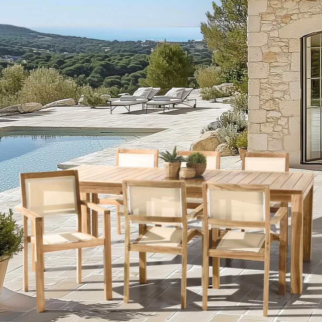 Découvrez également notre mobilier de jardin pour égayer votre espace extérieur. Vous pourrez y retrouver plusieurs catégories de produits en teck (brut, huilé ou teinté grisé), textilène et béton.