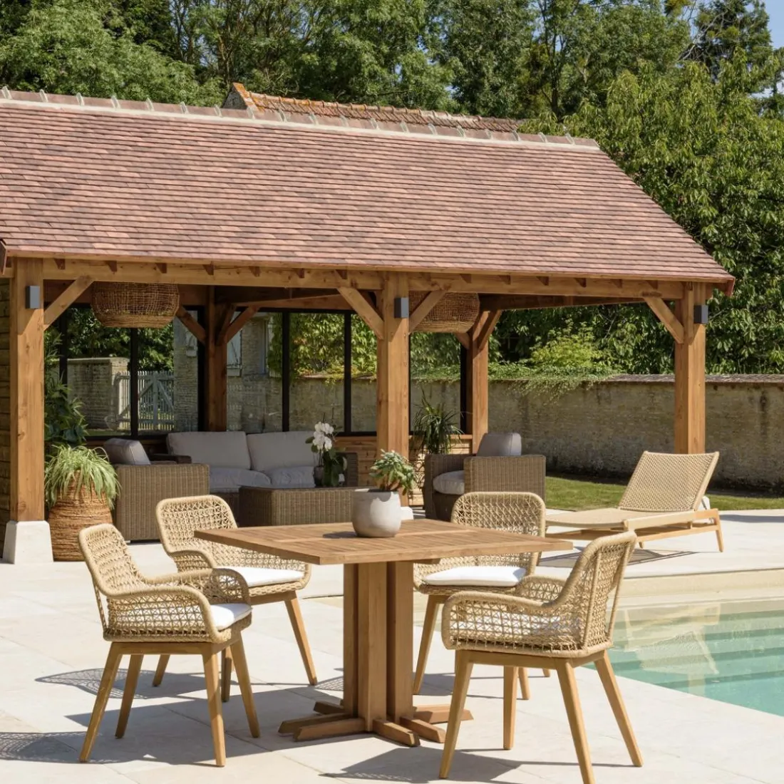 Découvrez également notre mobilier de jardin pour égayer votre espace extérieur. Vous pourrez y retrouver plusieurs catégories de produits en teck (brut, huilé ou teinté grisé), textilène et béton.