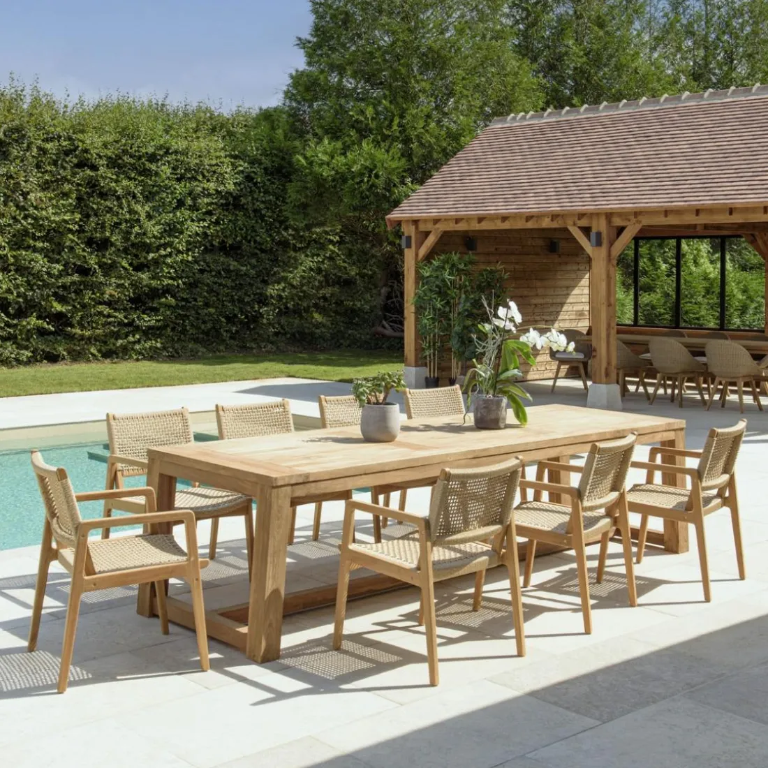 Découvrez également notre mobilier de jardin pour égayer votre espace extérieur. Vous pourrez y retrouver plusieurs catégories de produits en teck (brut, huilé ou teinté grisé), textilène et béton.