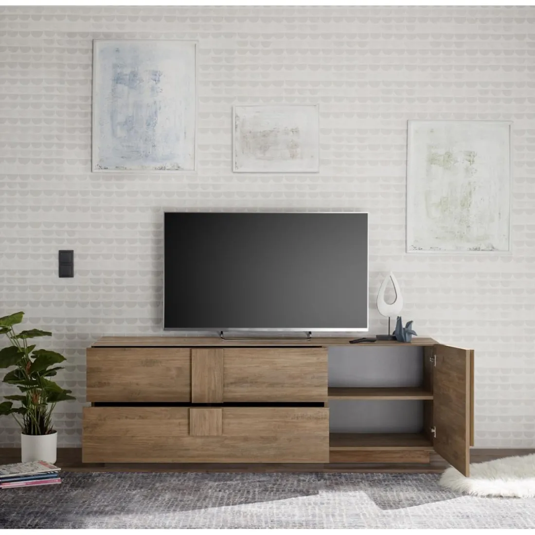 Ce Lowboard de marque 3S. x Home allie praticité et esthétique avec deux tiroirs et une porte pour un rangement optimal. Son style authentique apporte une touche de charme et de convivialité à votre intérieur. Solidement construit, ce buffet dans la catégorie Buffet, bahut, vaisselier dénote par son design robuste et son fini bois naturel qui rajoute à son charme. Aucune information sur la couleur n’a été fournie.