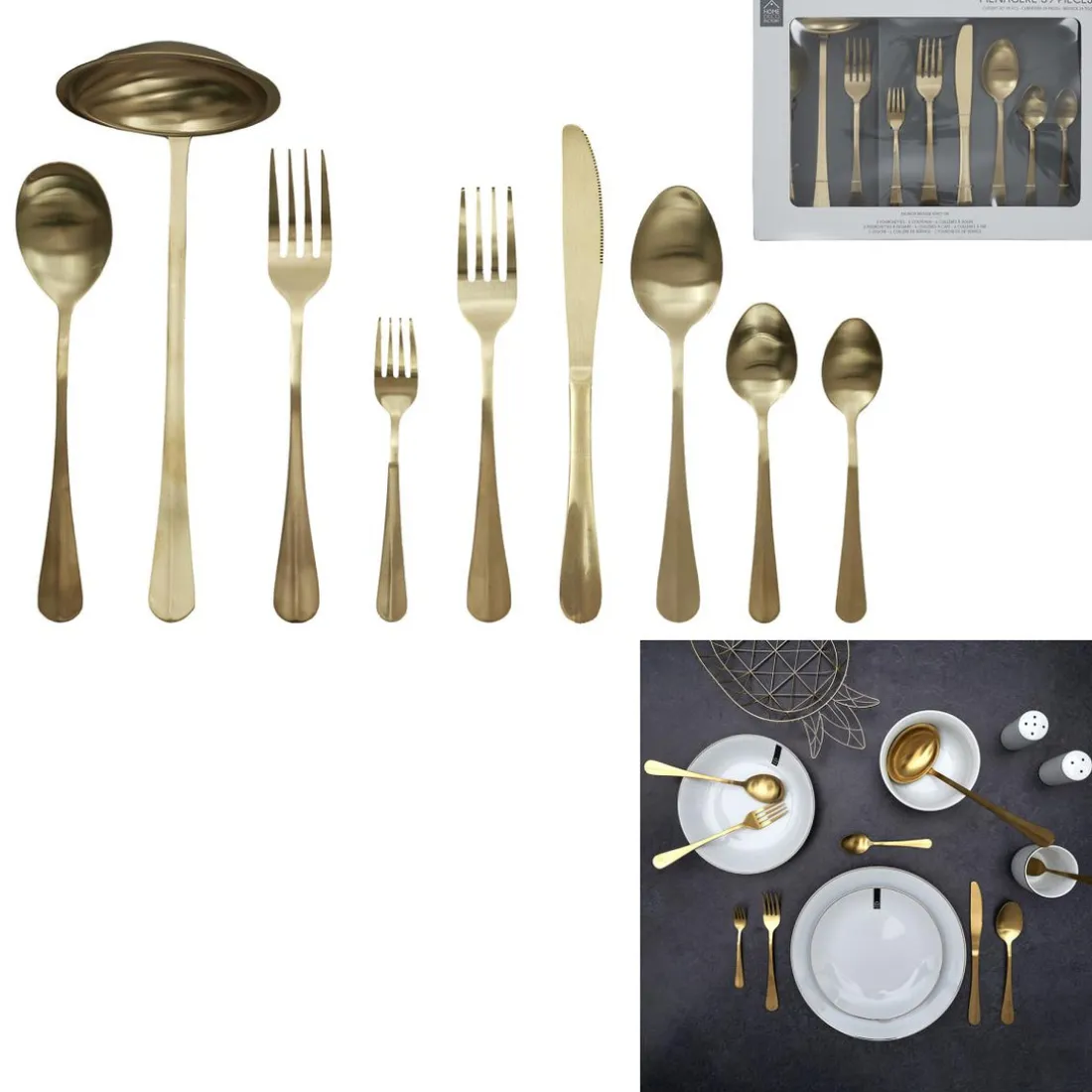 Votre moment de repas sera plus que parfait en utilisant cette Ménagère Dore X39 M4 de couleur dorée et brillante.