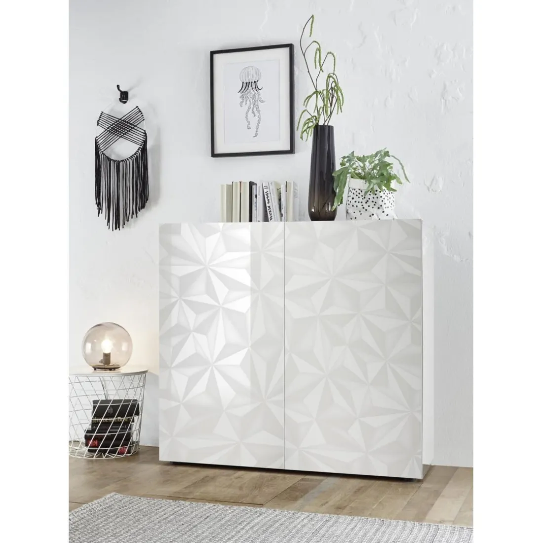 Le meuble 2 portes PRISMA laqué blanc brillant de marque 3S. x Home est un buffet authentique, idéal pour apporter une touche d’élégance et de sophistication à votre intérieur. Deux portes parfaitement alignées révèlent un espace généreux pour le rangement. La finition laquée blanche confère au meuble un style propre et minimaliste.