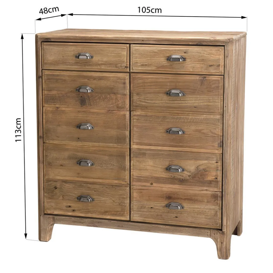 Caractéristiques Meuble ANDRIAN 2 Tiroirs 2 Portes Avec Deco Faux Tiroirs Bois Pin Recyclé