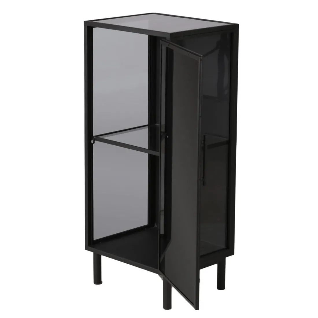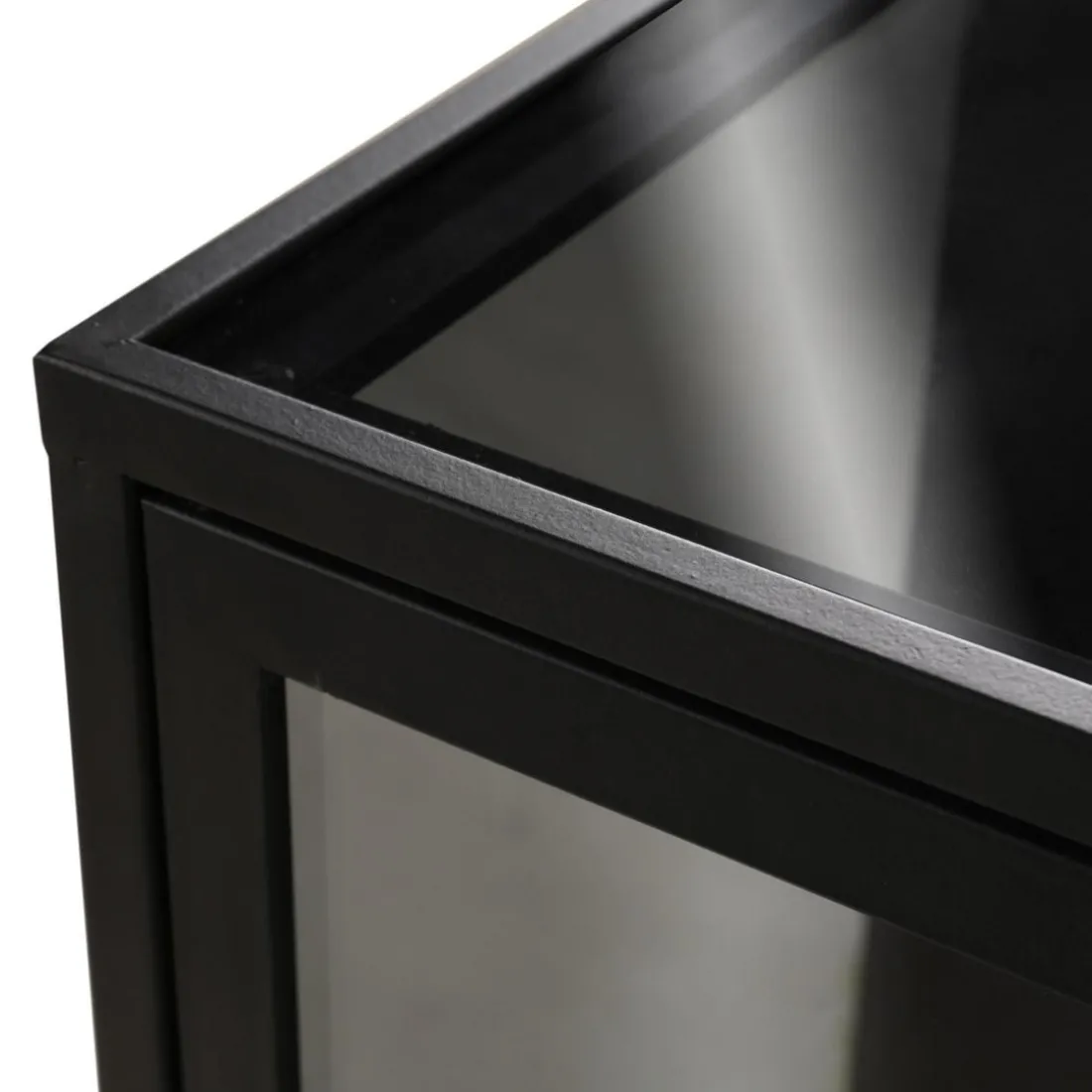 Caractéristiques Meuble bas métal noir et verre fumé