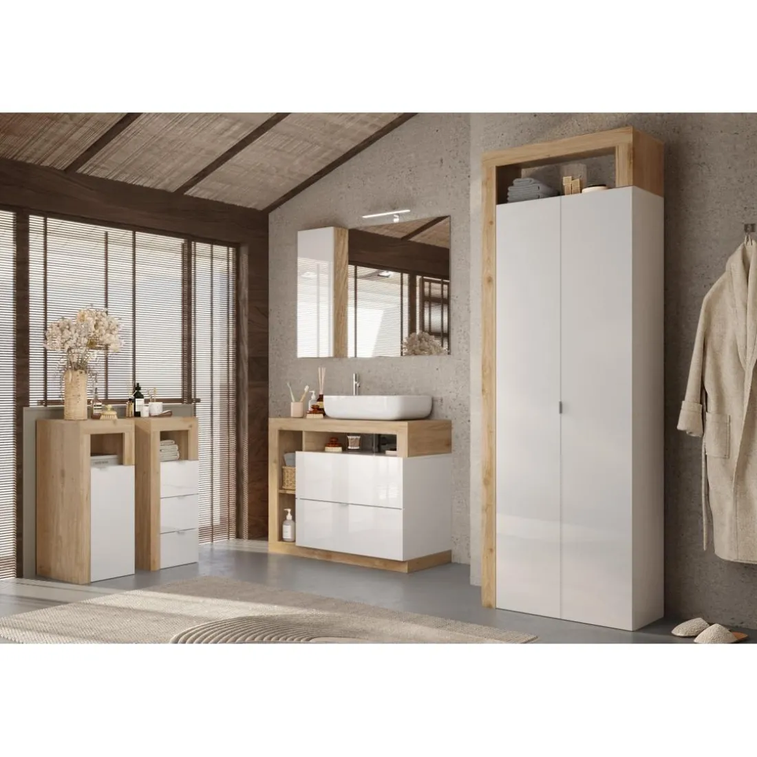 Le meuble de rangement pour salle de bain de la marque 3S. x Home offrant une porte avec une façade laquée brillante d’un blanc pur. Son corps est en Chêne, ajoutant une touche authentique à tout espace. Fabriqué à partir de contreplaqué robuste (MDF), il mesure 35cm de large et 78cm de haut. Conçu pour allier style et fonctionnalité, il constitue un ajout pratique et esthétique à votre salle de bain.
