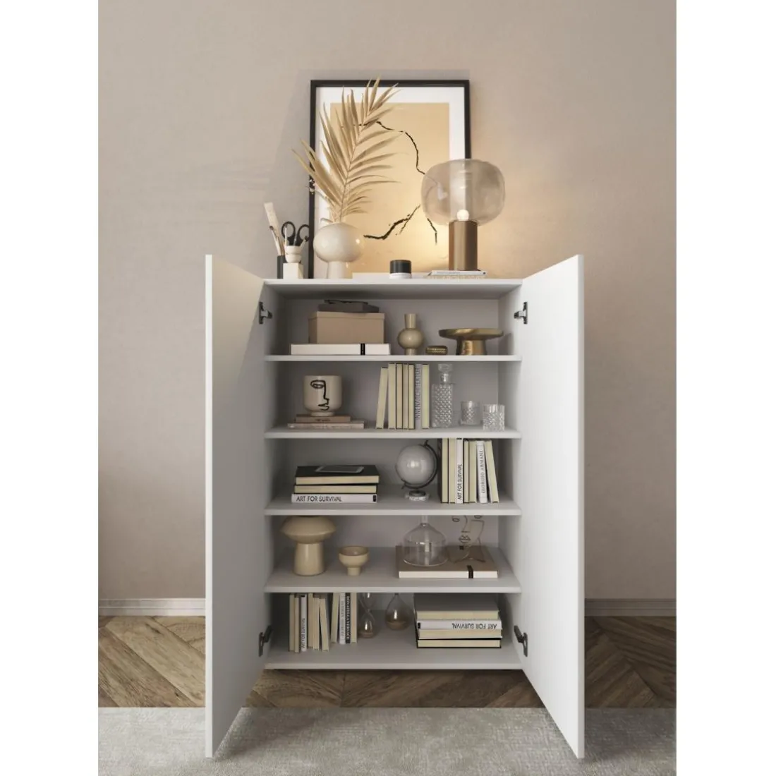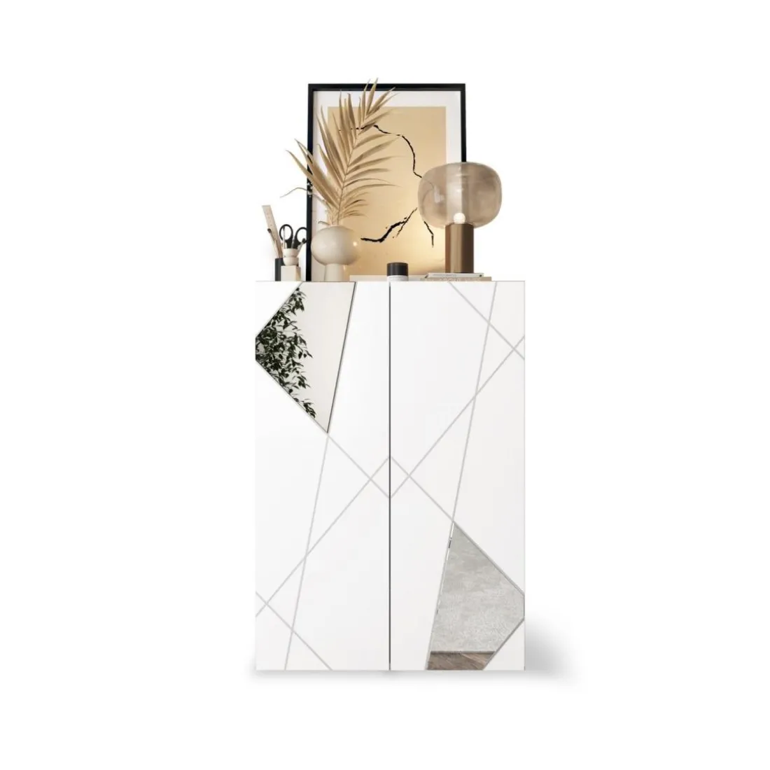 Caractéristiques Meuble de rangement Villaricca 2 Portes blanc serigraphie Miroir