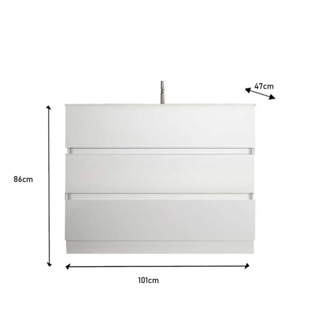 Caractéristiques Meuble salle de bain Sienna sur pieds 3 tiroirs vasque integrée en céramique