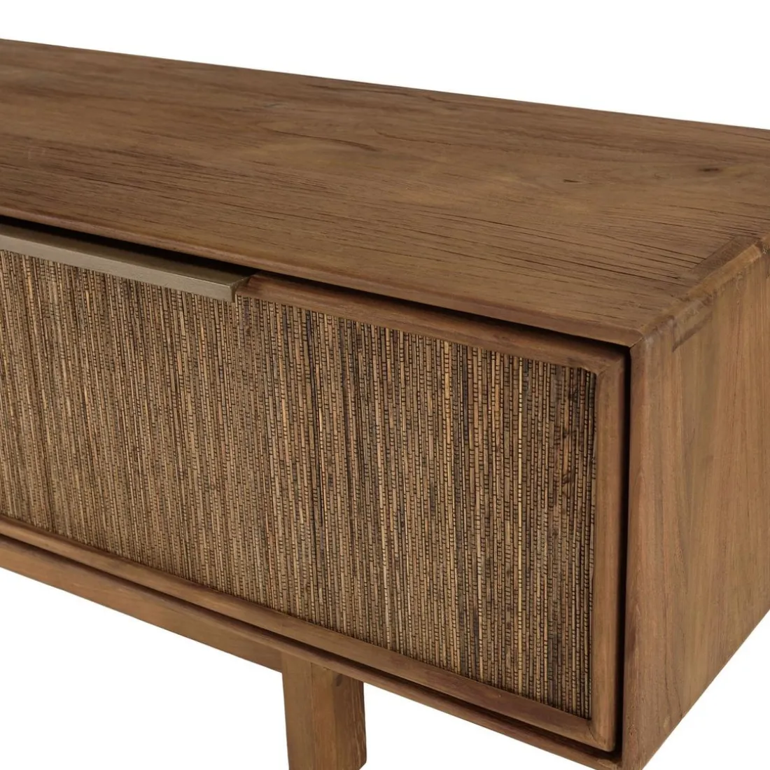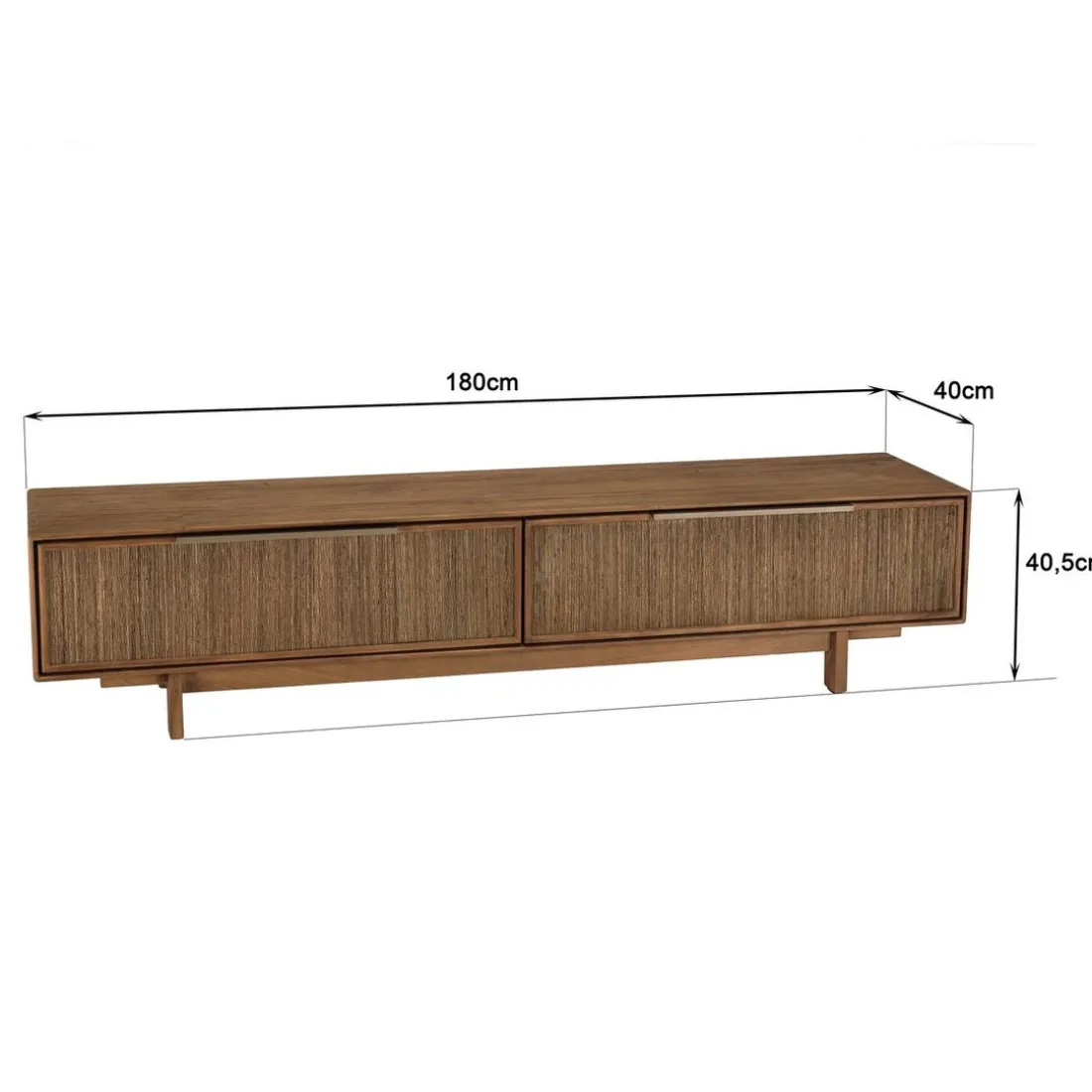 Caractéristiques Meuble TV 2 tiroirs en bois teck recyclé et tissage naturel