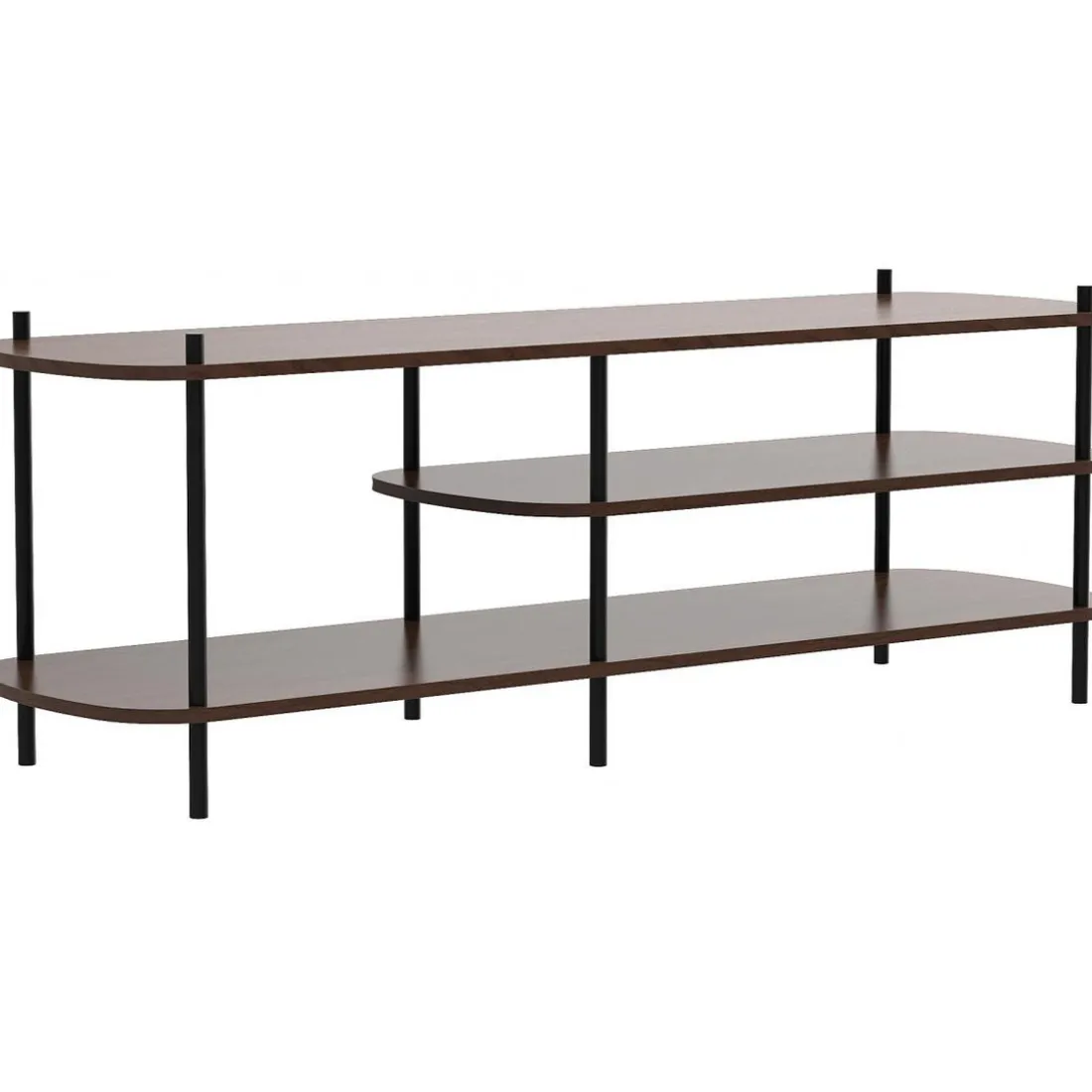 Caractéristiques Meuble TV 3 niveaux en métal noir et en bois