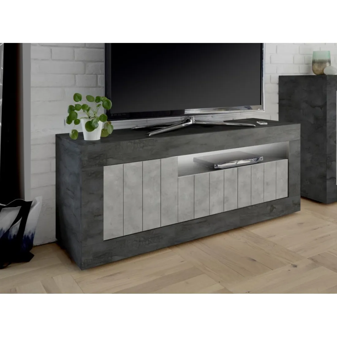 Caractéristiques Meuble TV 3 portes battantes oxyde et cement