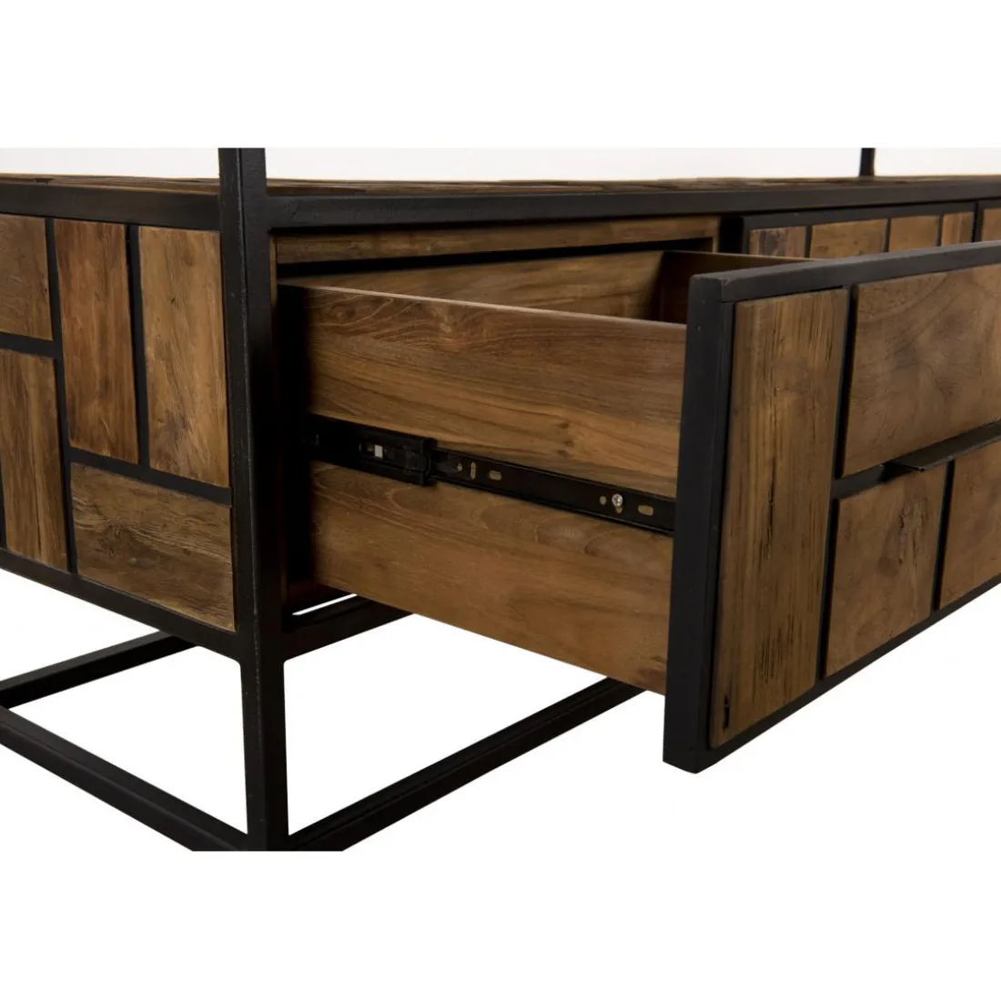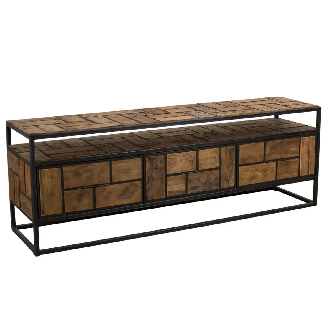 Caractéristiques Meuble TV ALIDA 3 Tiroirs 1 Étagère Bois Teck Recyclé Et Métal
