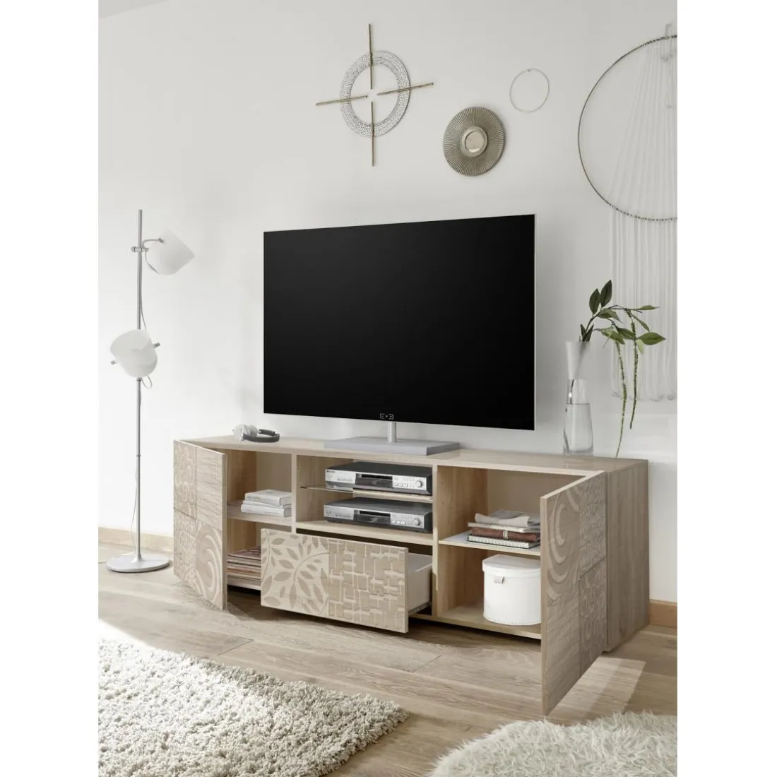 Caractéristiques Meuble TV deux portes et 1 tiroir décor chêne