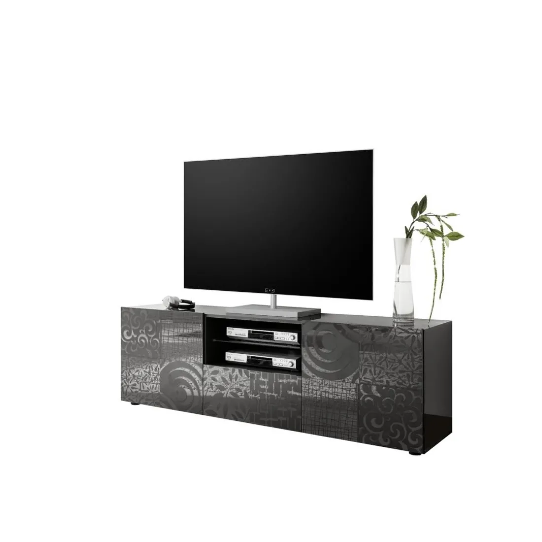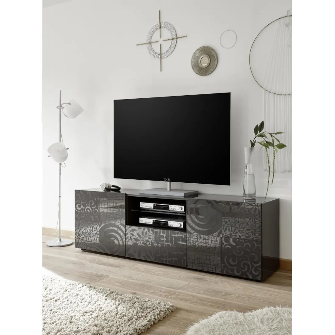 Le meuble TV MIRO de la marque 3S. x Home apporte une touche authentique à votre salon. Doté de deux portes et d’un tiroir, ce meuble offre des espaces de rangements généreux pour vos accessoires et appareils électroniques. Sa finition laquée en gris brillant assure élégance et modernité. Les lignes épurées et le design sobre de ce meuble TV permettent de l’intégrer facilement à tout type de décoration intérieure.