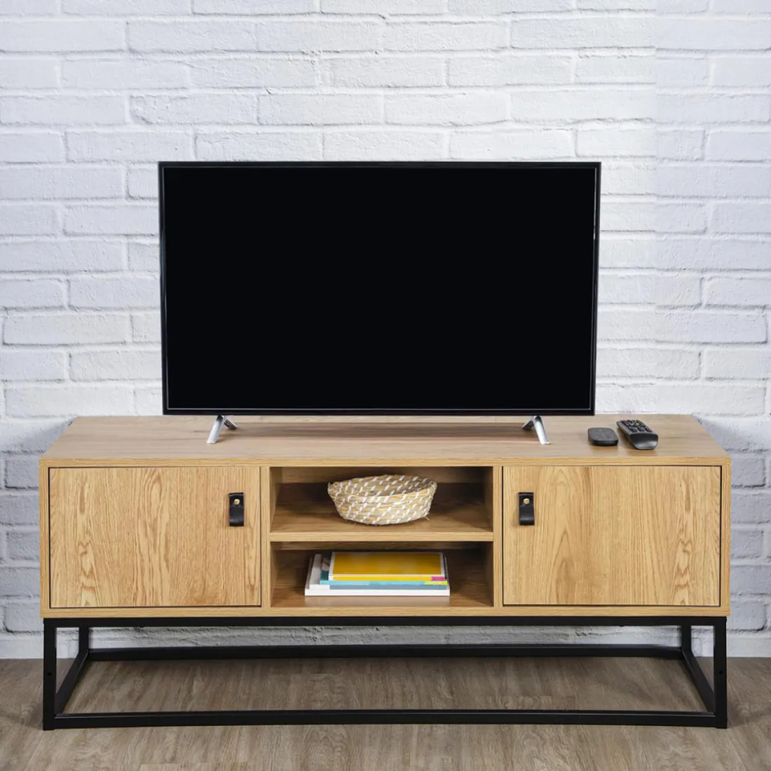 Laissez-vous charmer par le look authentique du Meuble TV industriel bois et Métal SALMA. Doté de 2 placards et 2 niches, il dispose d’un espace de rangement qui vous permettra de gagner de la place.