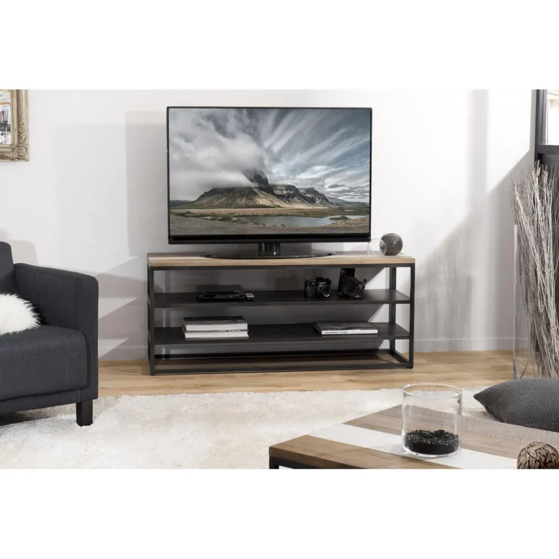 Caractéristiques Meuble TV LEANDRE Avec 2 Étagères Bois Et Métal