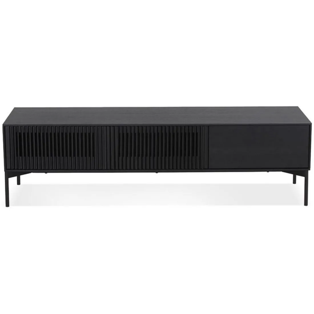 Avec sa couleur noire, ce Meuble TV Noir ACONIT va certainement vous plaire. Il est proposé avec une forme rectangulaire large, avec des espaces de rangement pratiques et design.