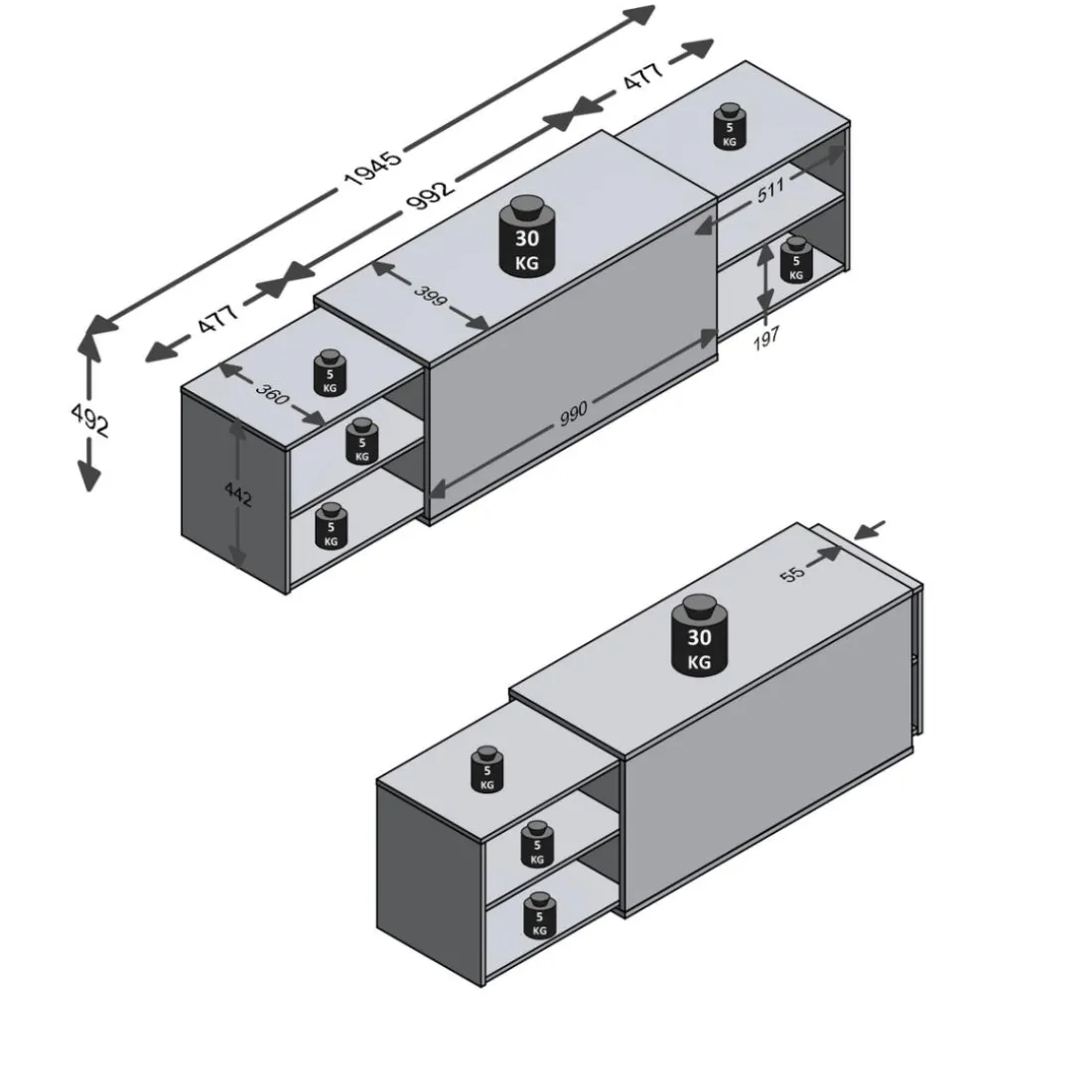 Caractéristiques Meuble TV SLIDE 3 anthracite et naturel