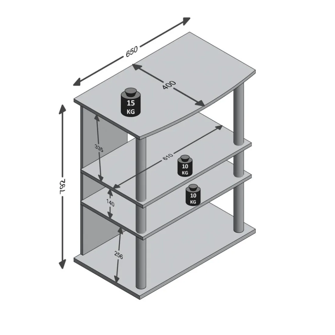 Caractéristiques Meuble TV VARIANT 7 4 plateaux sur roulettes