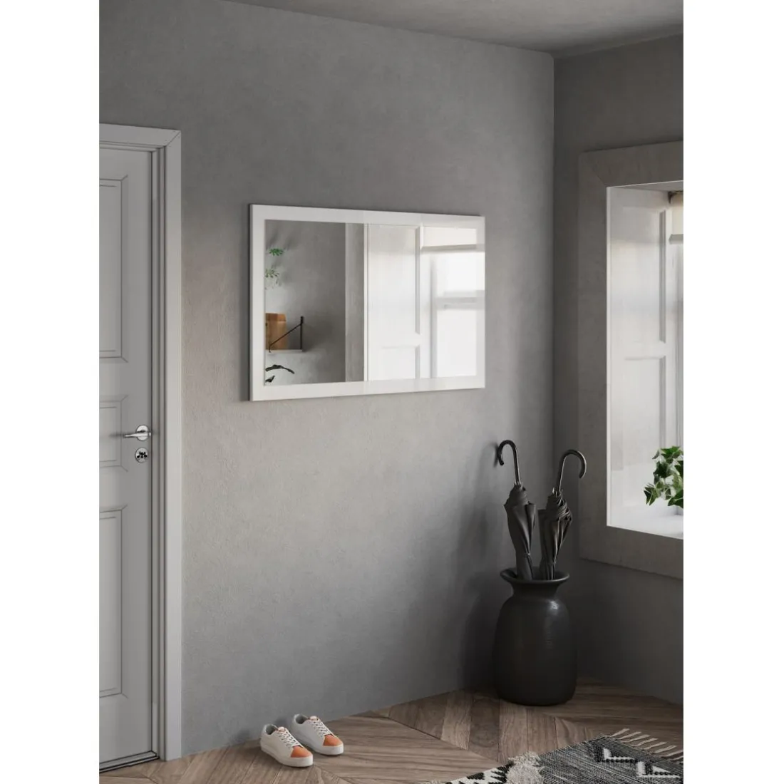 Caractéristiques Miroir Ferrare à fixer cadre coloris blanc laqué brillant. L72x 118H