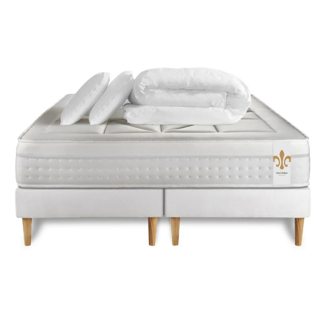 Découvrez le pack « Le Vingt-Huit double sommiers Blanc » de la marque de luxe LITIER DELUXE. Cet ensemble matelas sommiers de couleur Blanc est le gage d’un sommeil de qualité. Sa couleur blanche éclatante se marie parfaitement à n’importe quel décor. Sa matière en tissu lui confère un toucher doux et agréable, vous promettant des nuits sereines et confortables. Son style authentique apporte un charme indéniable à votre chambre. Le pack comprend deux sommiers qui, superposés, renforcent le soutien du matelas. Regardez de plus près, vous remarquerez des détails raffinés dans la couture et la finition du tissu, qui attestent de l’excellente qualité de cette pièce.