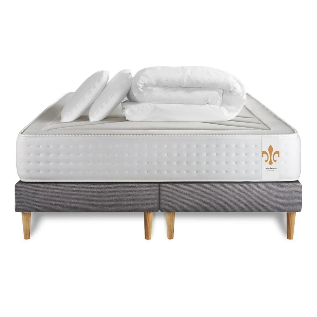 Le pack Le Vingt-Quatre double sommiers de la marque LITIER DELUXE comprend deux sommiers de couleur gris. Parfait pour un style authentique, ce set apportera une touche élégante à l’ambiance de votre chambre à coucher. Les sommiers sont conçus en tissu de haute qualité, garantissant une durabilité exceptionnelle et un confort optimal. Le ton gris des pièces ajoute une note de sophistication et de modernité. Notez l’exquise finition des coutures et l’harmonie esthétique du produit, détails qui reflètent le savoir-faire de la marque LITIER DELUXE. Apportez une élégance intemporelle à votre espace nocturne avec ce magnifique pack.