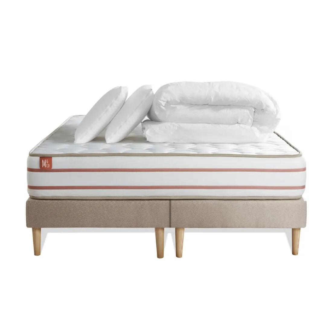 Caractéristiques Pack prêt a dormir matelas LE DOUX Memoire de forme double sommiers Beige 2 oreillers couette