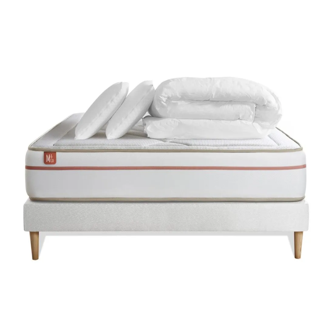 Caractéristiques Pack prêt a dormir matelas LE PAISIBLE Memoire de forme BioVisco sommier kit Blanc 2 oreillers couette