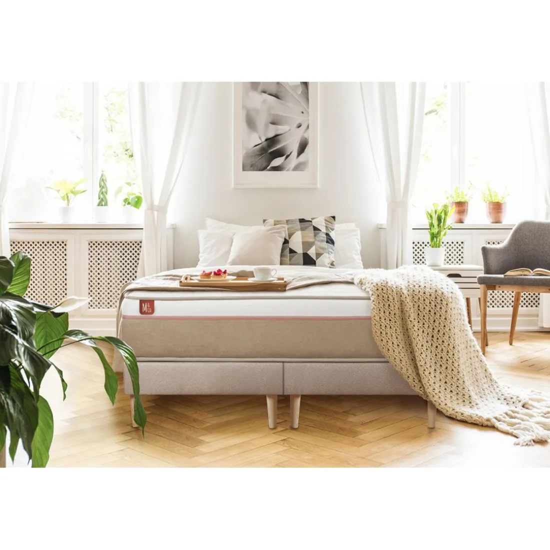 Le Pack prêt à dormir Marmottes & Co offre une expérience de sommeil premium. Le matelas « Le soyeux » doté de ressorts ensachés et de mémoire de forme BioVisco assure un confort et un soutien exceptionnels. La couleur beige du double sommier et du matelas en tissu donne une allure à la fois élégante et authentique à ce set. Sa finition beige est agréable à l’œil et crée une atmosphère chaleureuse et accueillante dans n’importe quelle chambre. Le tissu de haute qualité utilisé pour ce matelas est résistant et apaisant au toucher, contribuant à une bonne nuit de sommeil. Ce pack est la solution idéale pour ceux qui recherchent une qualité supérieure sans compromis.