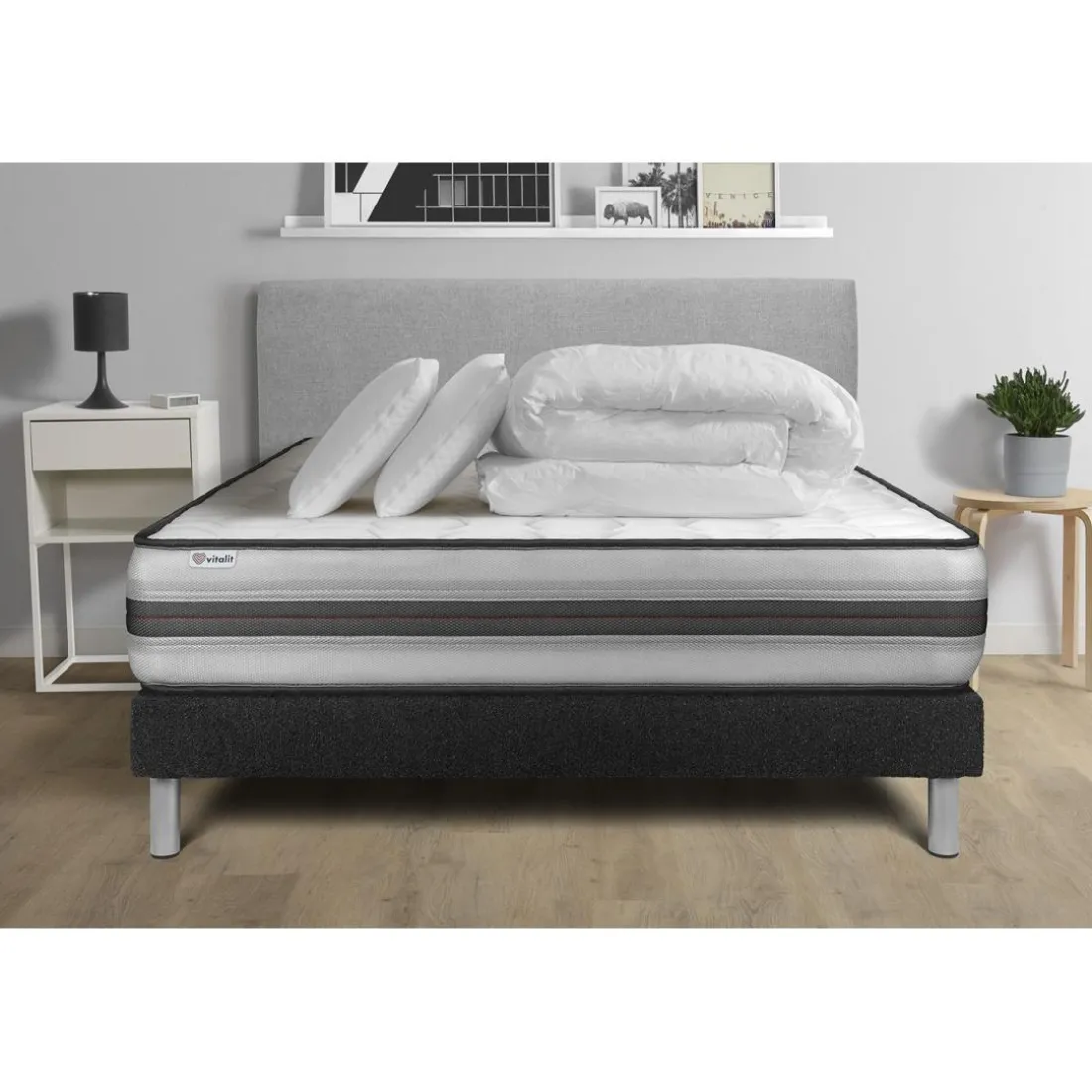 Adoptez l’ensemble prêt à dormir VITALPOWER RECOVER en sommier kit noir de la marque VITALIT. Apportez une note d’authenticité à votre chambre avec son style unique. Le produit se distingue par sa couleur Noir, donnant une puissance visuelle idéale, parfaite pour un décor sophistiqué ou neutre. Entièrement fabriqué en tissu de qualité, cet ensemble promet une durabilité et une résistance hors du commun pour assurer votre bien-être au quotidien. De plus, l’image fournie révèle un ensemble matelas sommier harmonieux. Le design sobre et minimaliste de cet ensemble vous offre un coin nuit issue de catégorie Ensemble matelas sommiers, qui s’invite avec aisance dans tout type de déco.