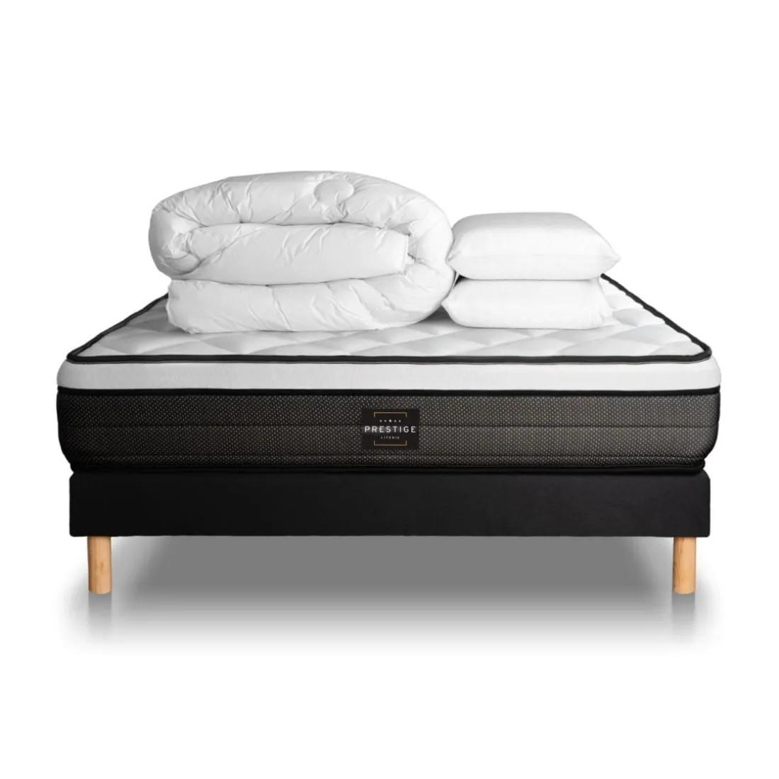Le Pack Suite sommier Kit Noir de la marque Prestige Literie est la combinaison parfaite d’un confort absolu et d’un style authentique. Flashy en noir, le pack s’harmonise avec tous les types de décoration intérieure. Le kit est conçu de manière innovante pour faciliter l’installation et garantir la durabilité. Le sommier offre un support solide et stable au matelas, garantissant un sommeil réparateur. L’ensemble présente un rapport qualité-prix exceptionnel et ravira ceux qui recherchent une solution de literie complète et élégante. Son design élégant et son coloris noir apportent une touche de luxe à votre chambre.