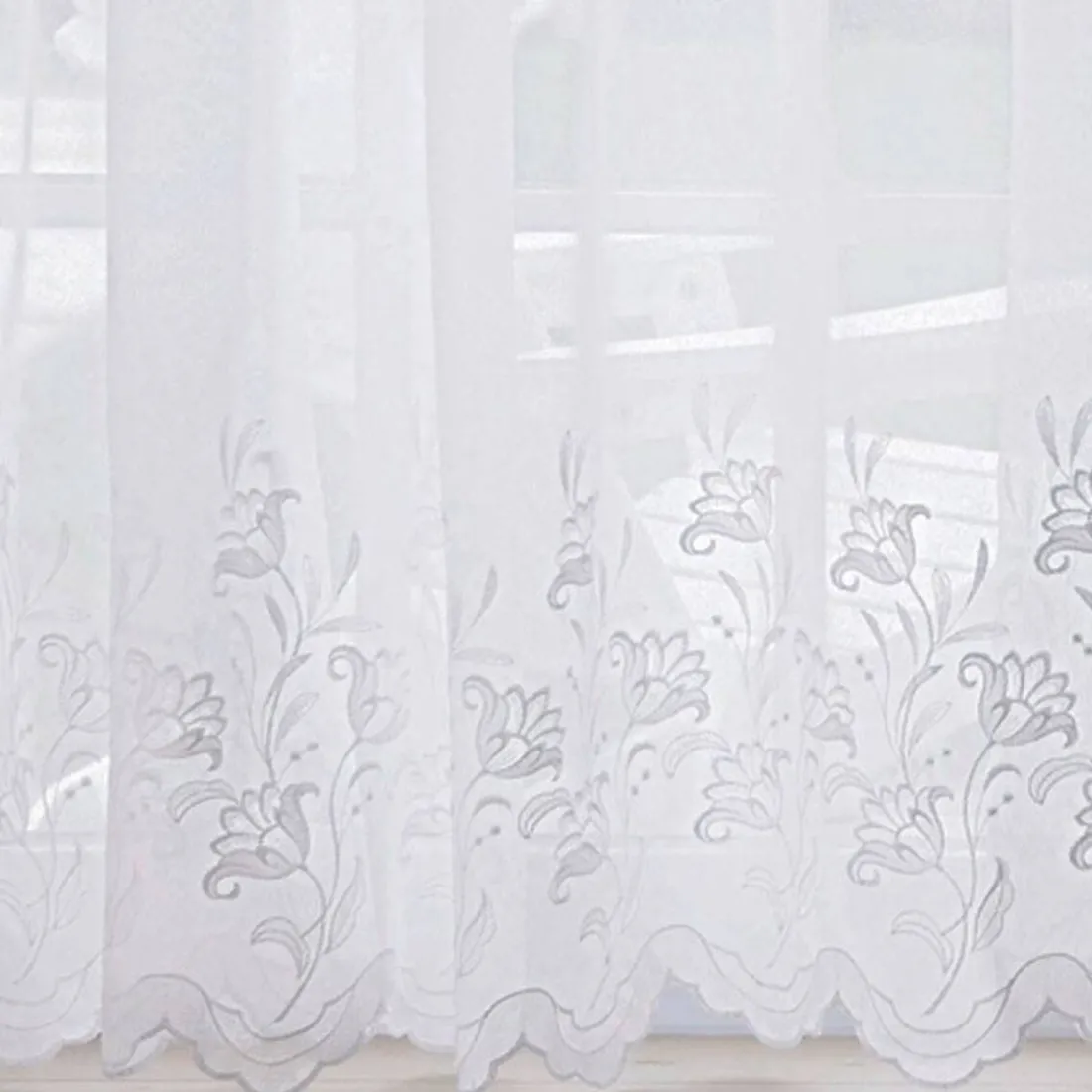 Beaucoup de charme et d’élégance pour ce voilage à l’aspect sablé, richement brodé en fils satinés et fini par écailles. Un rideau au tombé impeccable qui tamise doucement la lumière et protège des regards venant de l’extérieur !