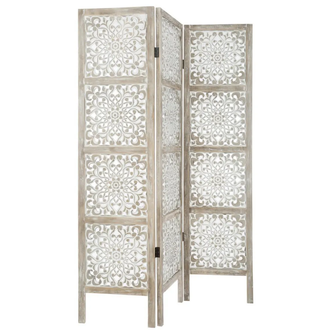 Pratique et décoratif, ce Paravent Bois ETNIK mérite une place dans votre intérieur. Il est composé de trois panneaux reliés par des charnières et ornés d’un joli motif floral. On aime particulièrement sa finition blanchie.