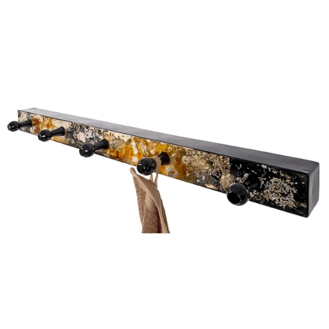 Caractéristiques patère murale métal laqué noir-doré 5 crochets