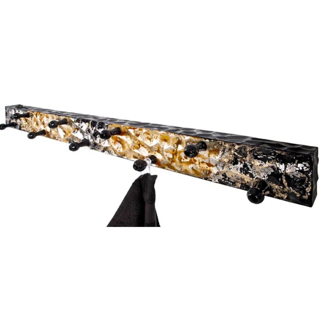 Caractéristiques patère murale métal laqué noir-doré 9 crochets