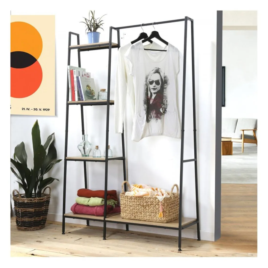 La Penderie de la marque Calicosy est un mélange de style industrielle et rustique. Sa couleur Beige lui offre un design sobre et élégant. Faite en bois robuste, elle comprend une tablette basse pour chaussures et quatre étagères supplémentaires pour du rangement supplémentaire. Ce parfait mélange de fonctionnalité et de style est idéal pour n’importe quel espace.