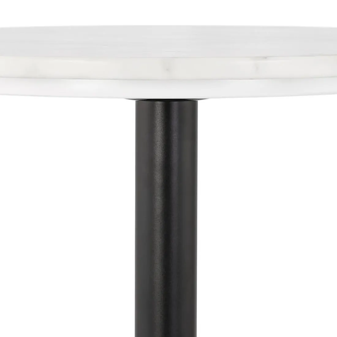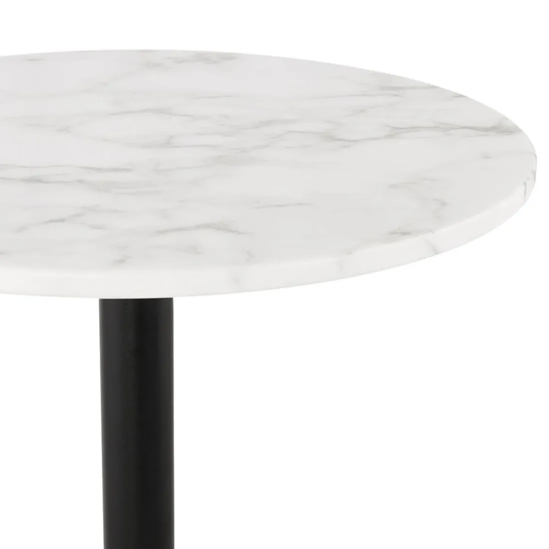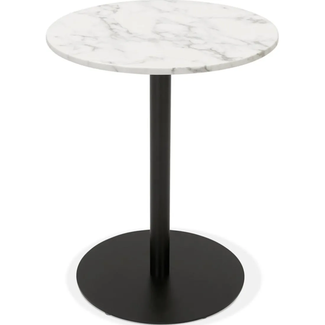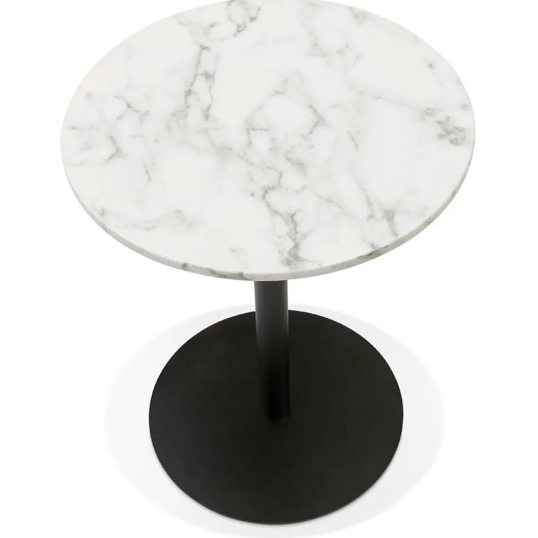 Caractéristiques Petite table bistrot ronde ‘TOMY’ en pierre blanche effet marbre et métal noir