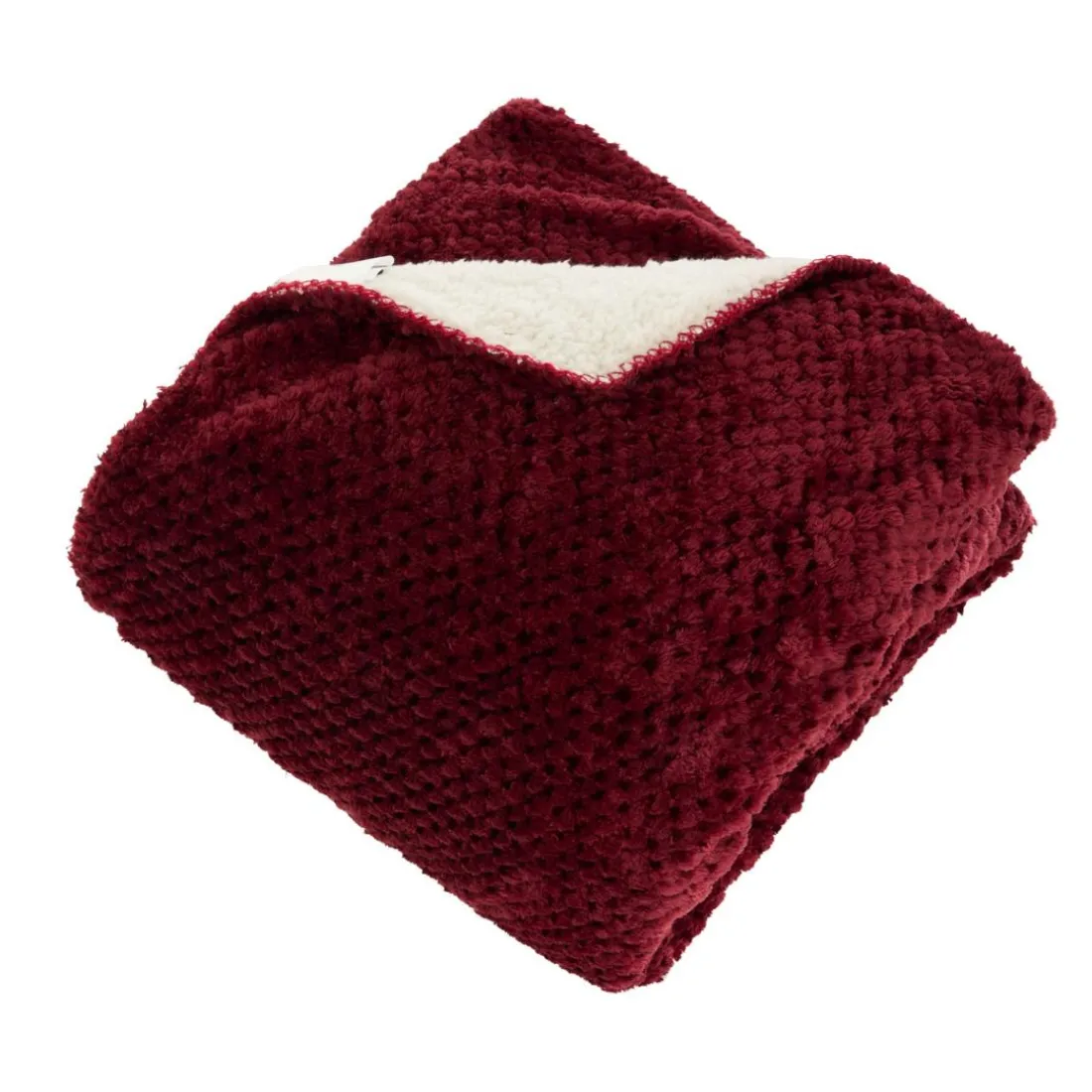 Caractéristiques Plaid flanelle effet sherpa Lyno 170x130cm – rouge grenati