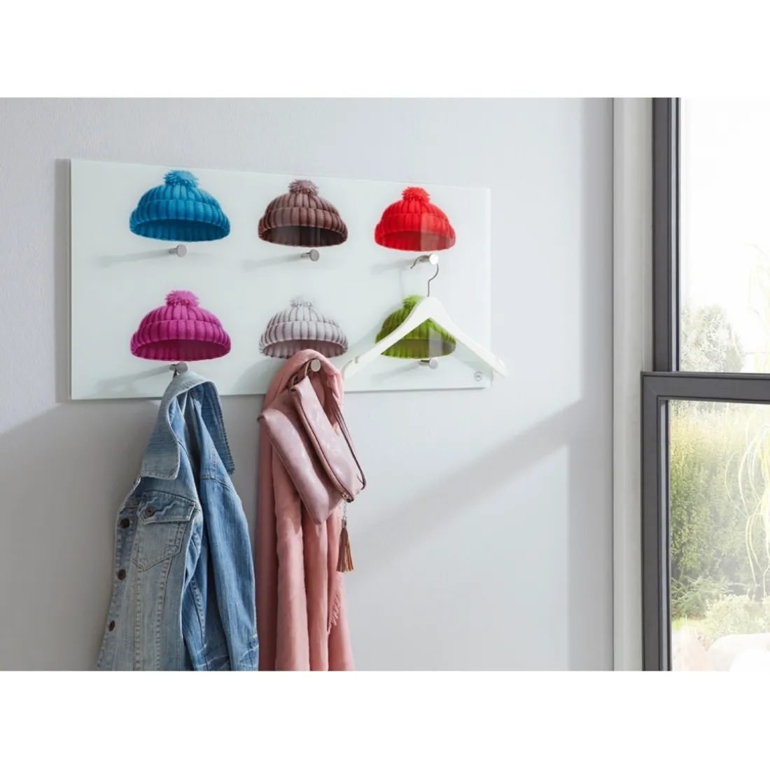 verre trempé avec motif imprimé (bonnet), 6 crochets en optique inox