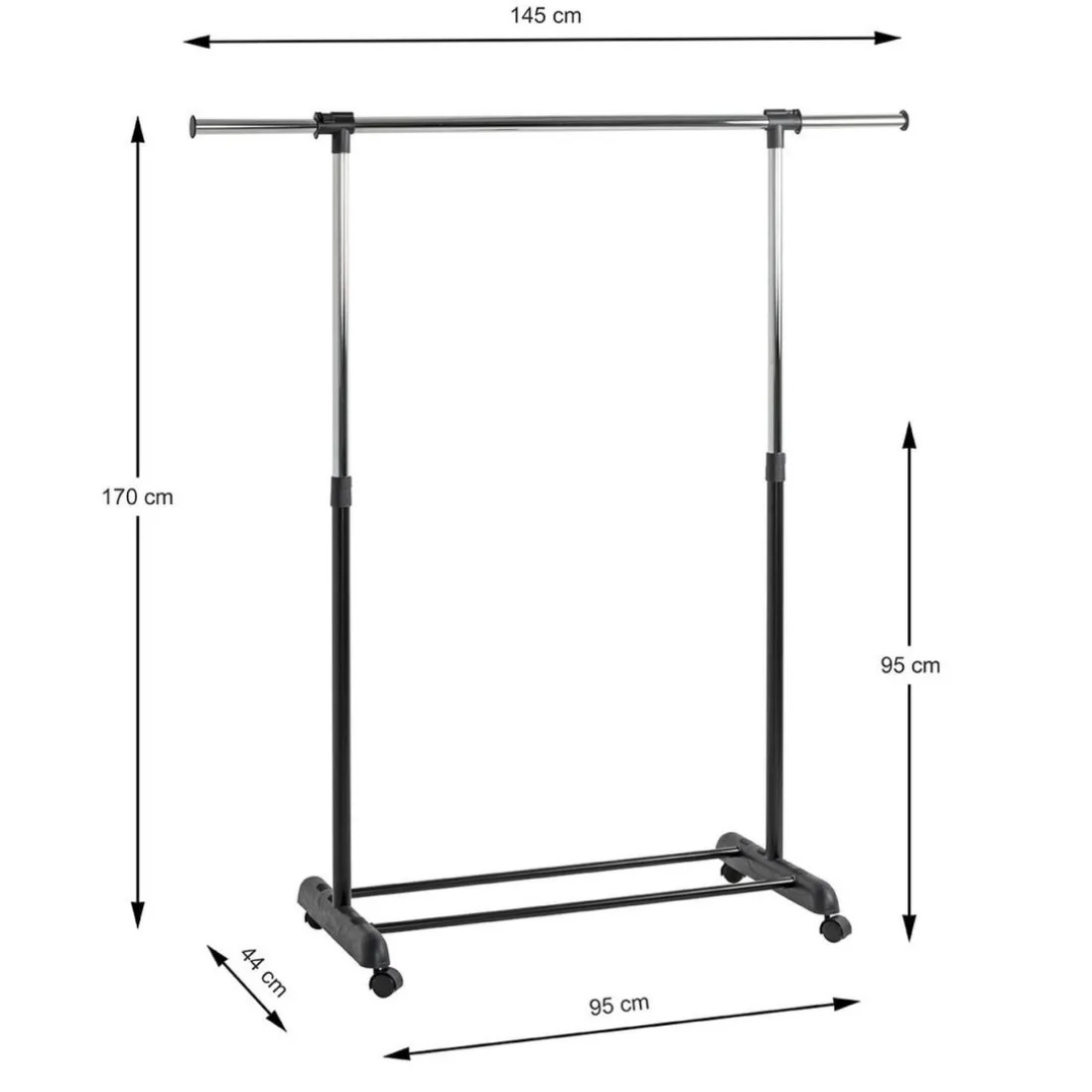 Le portant de la marque 3S. x Home est un mélange de robustesse et de fonctionnalité. Fabriqué en acier noir, ce portant se distingue par sa couleur noire élégante qui peut s’adapter à tous les intérieurs. Avec une hauteur ajustable jusqu’à 170 cm et une longueur de 145 cm, il offre suffisamment d’espace pour ranger vos vêtements. Ses roulettes en plastique rendent le déplacement facile. Il offre ainsi une solution de rangement pratique et durable.