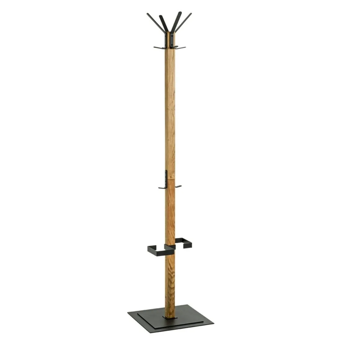 Caractéristiques Porte manteau en bois avec crochets et pied métal noir