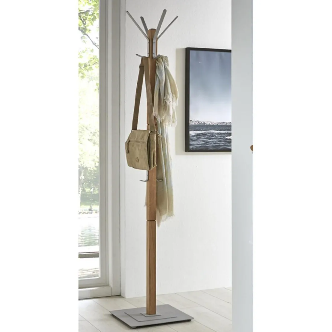 Le porte-manteau de la marque 3S. x Home est un produit pratique et élégant pour votre intérieur. Façonné en bois massif de chêne, la qualité et la robustesse de ce matériau est indéniable. Les crochets et le pied sont en métal, ce qui renforce sa solidité. La couleur alu du métal apporte une touche design et moderne. La répartition des crochets offre une grande capacité d’accroche. Le piètement métallique garantit une excellente stabilité. Optez pour ce porte-manteau à la fois fonctionnel et décoratif.