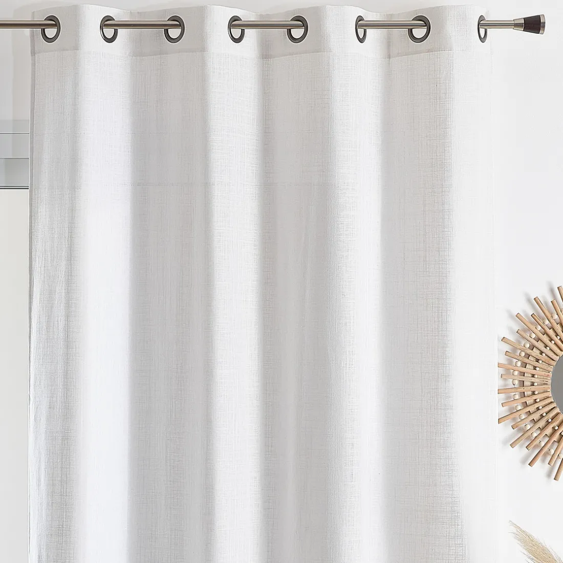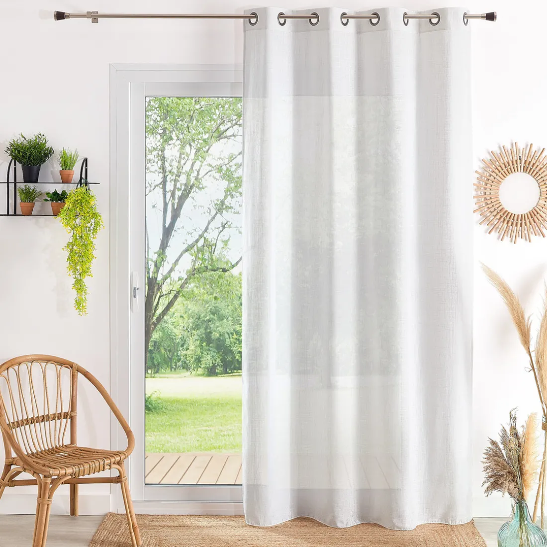 Découvrez le voilage étamine uni COTOLINO blanc de 3S. x Home, une solution à la fois esthétique et fonctionnelle pour habiller vos fenêtres. Ce modèle est conçu en 65% polyester, 25% coton et 10% lin, offrant une transparence équilibrée et un aspect naturel raffiné. Sa texture tramée, son tombé fluide et sa teinte blanc pur chiné en font un choix idéal pour toutes les ambiances, des intérieurs épurés aux espaces chaleureux. Le tissu de 125 g/m² garantit une bonne tenue, tandis que les 8 œillets ronds finition canon de fusil permettent une pose rapide et stable. Dimensions : 140 x 260 cm.