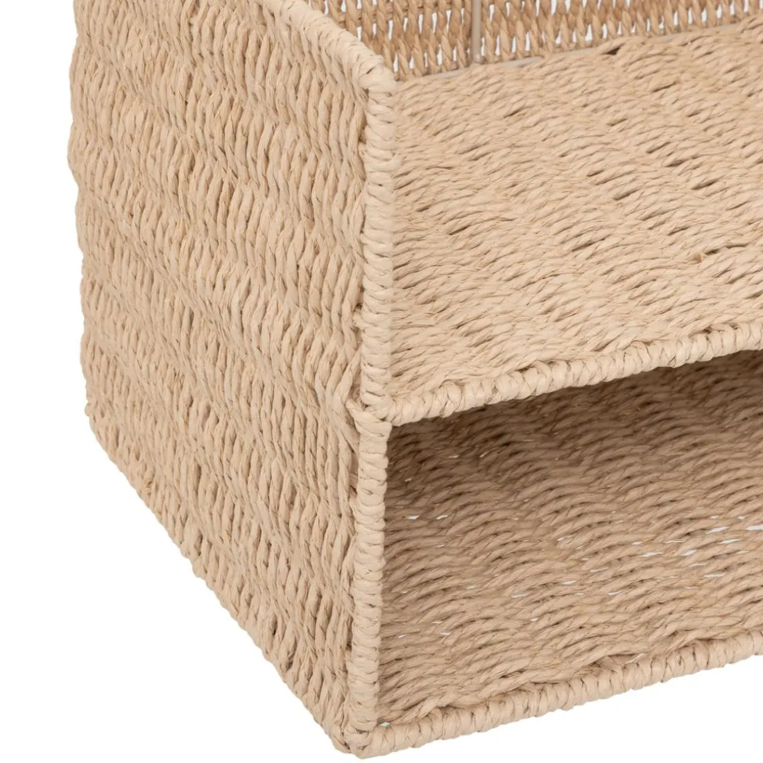 Le rack à documents « Kord » double est un produit de la marque 3S. x Home. C’est une boîte de rangement en papier tressé, ce qui lui donne une apparence élégante et naturelle. Sa couleur beige s’harmonise facilement avec d’autres éléments de votre bureau. Ce rack a une hauteur de 24 cm et une longueur de 32 cm, qui offre un espace de rangement généreux pour tous vos documents importants. Sa conception double offre une organisation supplémentaire, vous permettant de séparer et de classer vos documents de manière efficace. En utilisant l’image fournie, on peut voir le détail de l’artisanat du tressage et la qualité du produit.