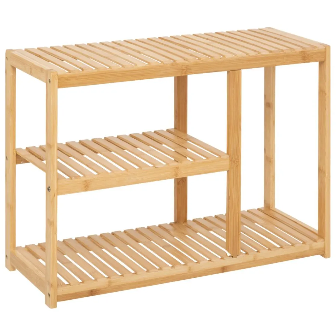 Le range chaussures et bottes en bambou de la marque 3S. x Home est un meuble à chaussures compact avec une capacité pour stocker jusqu’à 8 paires. Son design minimaliste et sa couleur beige permettent de l’adapter à tous les types de décor intérieur. Mesurant une longueur de 71 cm, il offre un espace de rangement adéquat sans encombrer la pièce. Fabriqué en bambou, il est durable et respectueux de l’environnement. Sur la base de l’image fournie, le produit a un plateau supérieur plat qui peut servir d’étagère supplémentaire pour des objets tels que des clés ou un sac à main. La structure ouverte du range chaussures facilite l’aération, évitant ainsi les mauvaises odeurs.