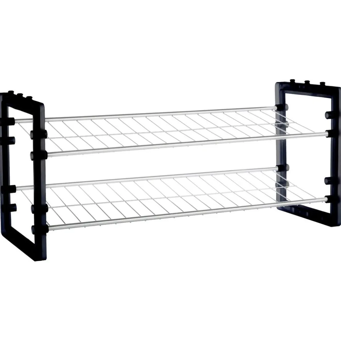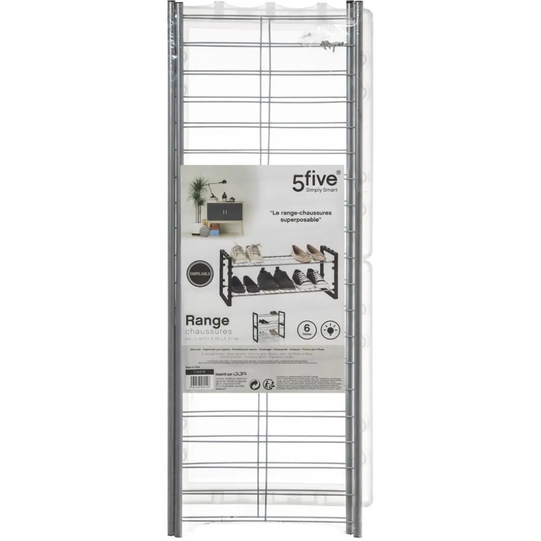 Organisez votre intérieur avec ce Range-chaussures x6 noir pratique et astucieux. Ses 2 niveaux peuvent accueillir jusqu’à 6 paires de chaussures. Son design épuré donne un aspect moderne à ce meuble fonctionnel.