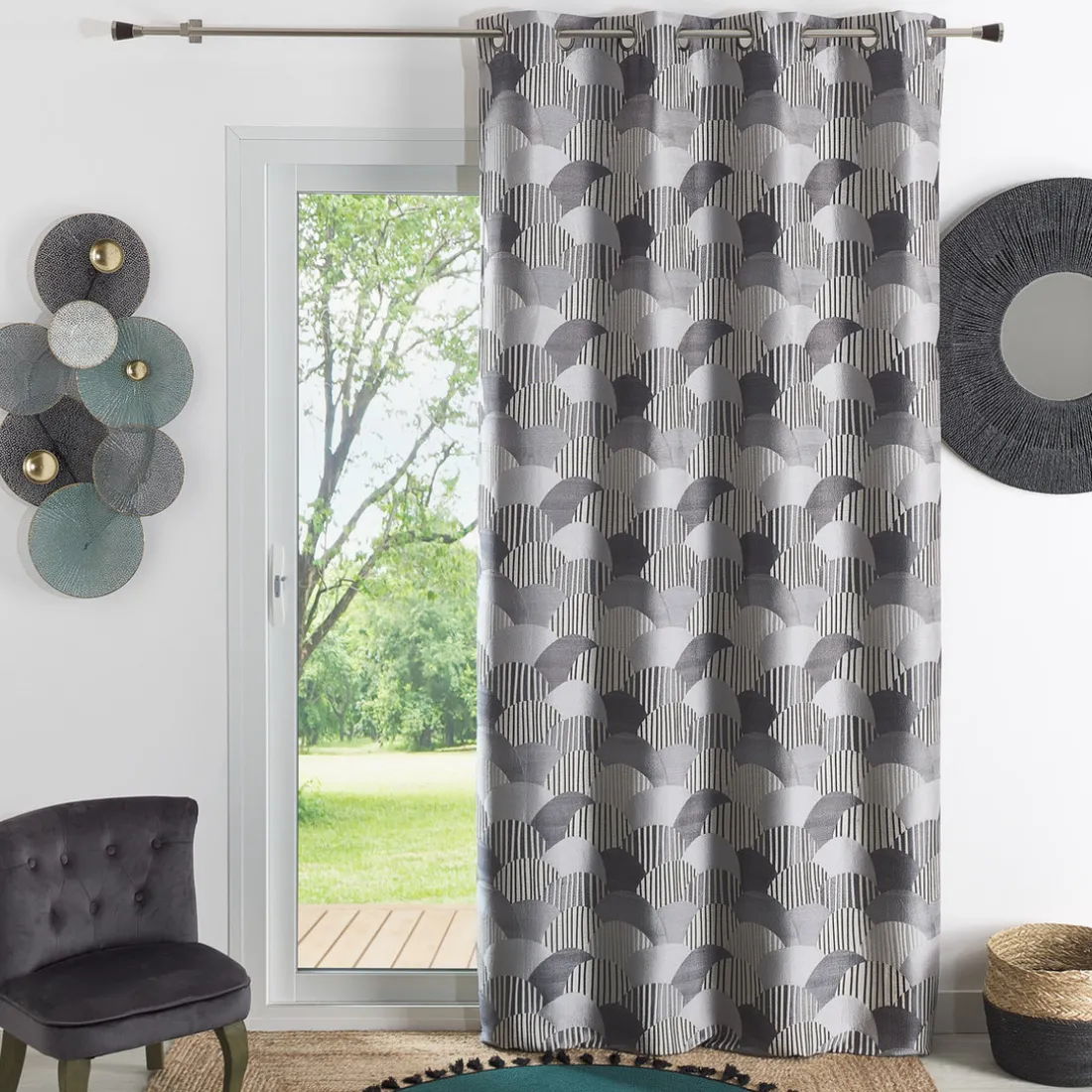 Le rideau ameublement ASIA 3S. x Home combine style moderne et matière de qualité. En jacquard à motif graphique, il est proposé ici en coloris gris, une teinte sobre et tendance qui s’adapte à tous les intérieurs. Ce modèle de 140 x 260 cm est parfait pour les ouvertures standards. Fabriqué en 97 % polyester et 3 % coton, il offre un rendu texturé et un entretien facile. Il se fixe simplement grâce à ses huit œillets ronds métal finition canon de fusil, pour un tombé fluide. Avec un grammage de 260 g/m², il assure une occultation partielle et une excellente tenue. Idéal pour une déco urbaine, design ou graphique.